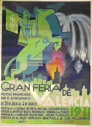 Hay fuego y llamada, y sobre todo hay un porvenir que estaba todavía por definirse. No había llegado la República y, por supuesto, no hay cataclismo alguno. No hay un fascismo que se avizore. Como tampoco lo había, meses después, cuando el Ayuntamiento convoque a la Feria de Julio, la correspondiente a 1931. Un cartelista acreditado es el encargado de convocar a los veraneantes para disfrutar de los regocijos públicos. Es Josep Renau. Se acaba de afiliar al Partido Comunista de España.