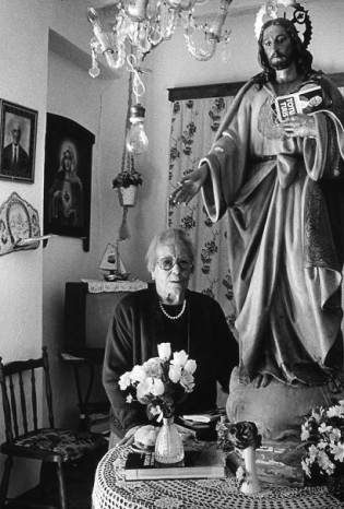 El rincón de la tía Eloísa está atestado: lo tiene como si hubiera deseado mostrar sus mejores posesiones para salir en la foto. Por eso aparece con un Sagrado Corazón.