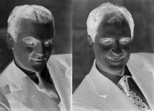 Lo que se ve y lo que no se ve. A propósito de estas fotografías, podríamos decir mucho: de su evidente semejanza, de sus vasos comunicantes, de lo previsto o lo imprevisto de la toma. ¿Por qué plantarse así, mirando a la cámara y esbozando una sonrisa? Podemos convenir en que ambos afectan poses picaronas, con la disposición de quien quiere enamorar o persuadir o encandilar. ¿Por qué ambos retratados ponen ojos sugerentes?