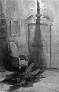 Observo uno de los grabados que Gustave Doré dedicó a El cuervo. Me fascina el episodio: sólo vemos sombras, o al menos esa penumbrosa realidad es lo significativo. Un caminante de la vida parece caído junto a un sillón. No es un diván exactamente, pero es un asiento confortable en el que el protagonista del poema de Edgar Allan Poe bien pudo fantasear sobre sí mismo, sobre lo que el ave representaba, sobre la vida breve, sobre las amenazas que se ciernen sobre nosotros.