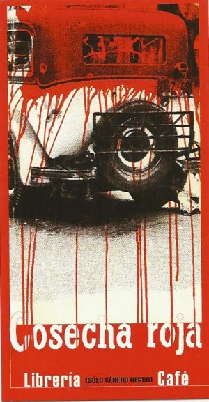 Me siento muy complacido y honrado de haber estado allí colaborando con Amnistía y hablando en una librería-café cuyo motivo gráfico reproduce la cubierta que Daniel Gil hizo para la primera edición española de Cosecha roja (1929), de Dashiell Hammett, en El Libro de Bolsillo de Alianza.