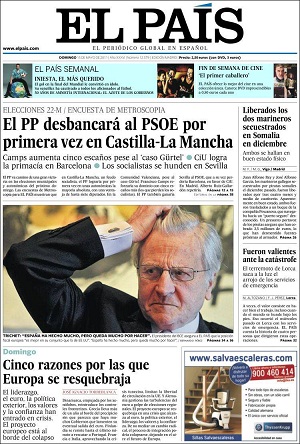 «La encuesta que hoy publica El País sobre las elecciones autonómicas dibuja un panorama que no puede ser más desolador para los socialistas valencianos que quedan por debajo de la barrera psicológica del 30%. Un golpe que, si se confirma el próximo domingo, abrirá un periodo de inestabilidad e incertidumbre en un partido que no levanta cabeza en la Comunidad Valenciana desde 1993. Solo si ese 20% de votantes socialistas indecisos se moviliza a última hora rebajaría la prepotencia de un PP que pronostica una victoria «histórica». Pero aún es pronto para anticipar acontecimientos. Como reza el tópico, la única encuesta válida es el escrutinio de los votos. Por eso es importante acudir a las urnas. Por eso y para elegir a los mejores y más honestos para gobernar».