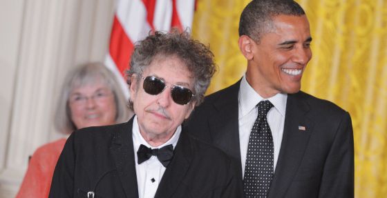 Dylan. «Obama bromeó sobre el hecho de que su tierra natal, Minnesota, era demasiado fría para iniciar la revolución. Todos rieron la ocurrencia, salvo el cantante que se mantuvo impávido», leo en El País.