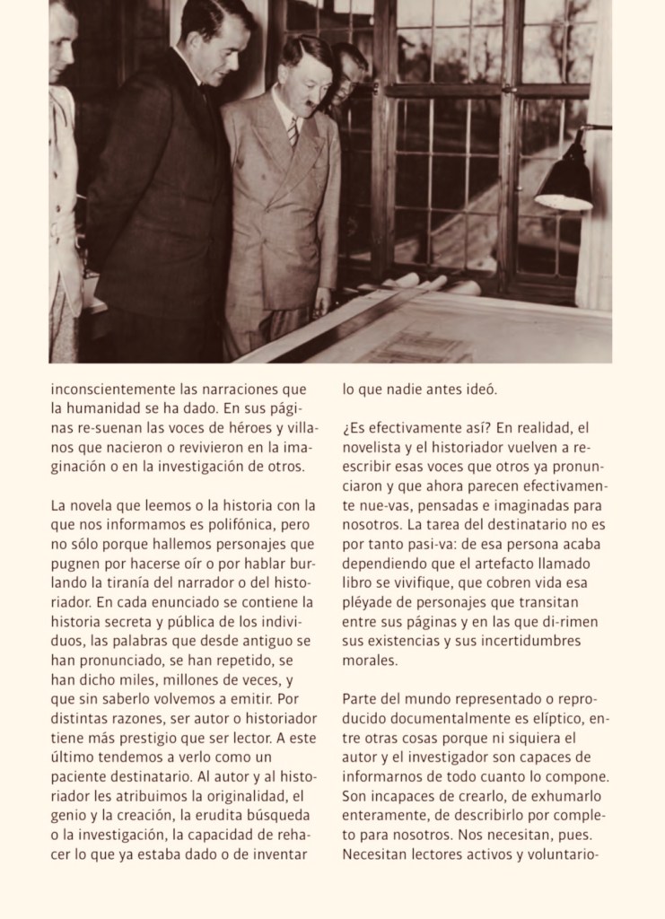La novela que leemos o la historia con la que nos informamos es polifónica, pero no sólo porque hallemos personajes que pugnen por hacerse oír o por hablar burlando la tiranía del narrador o del historiador.