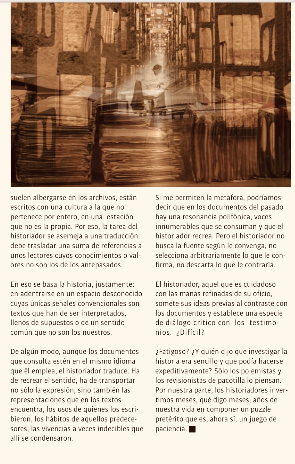 Si me permiten la metáfora, podríamos decir que en los documentos del pasado hay una resonancia polifónica, voces innumerables que se consuman y que el historiador recrea.