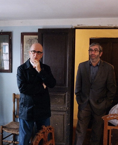 Antonio Muñoz Molina y Justo Serna en la pensión de Luisa Torrego, Segovia (2010). Fotografía de Ricardo Martín, detalle.