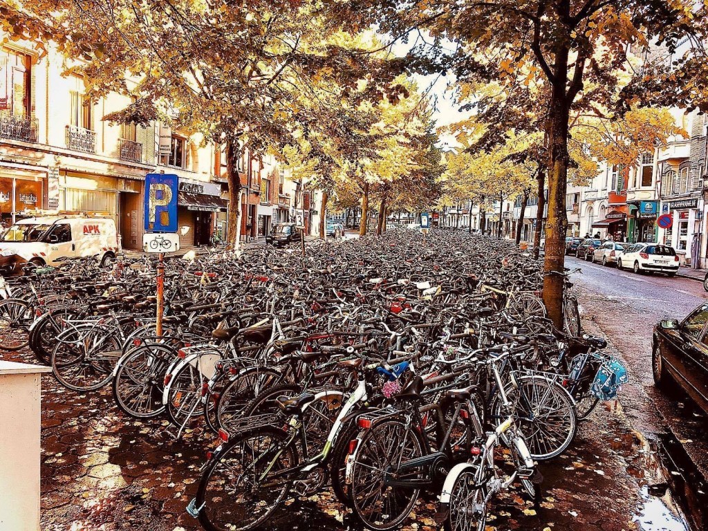 Es un parking, un parking de bicicletas. Es tal el abigarramiento, que parece un lienzo en el que apenas se perfila una mancha de color.