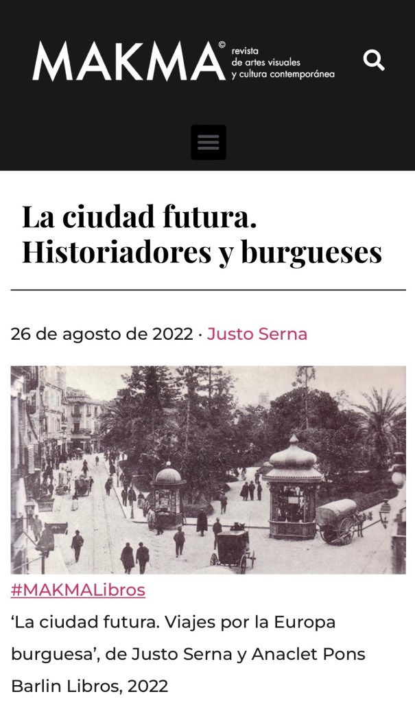 La ciudad futura (Barlin Libros, 2022), libro del que somos autores Anaclet Pons y yo mismo, es un relato histórico. Es una investigación y una narración. Es un recorrido por algunas de las principales ciudades del siglo XIX.