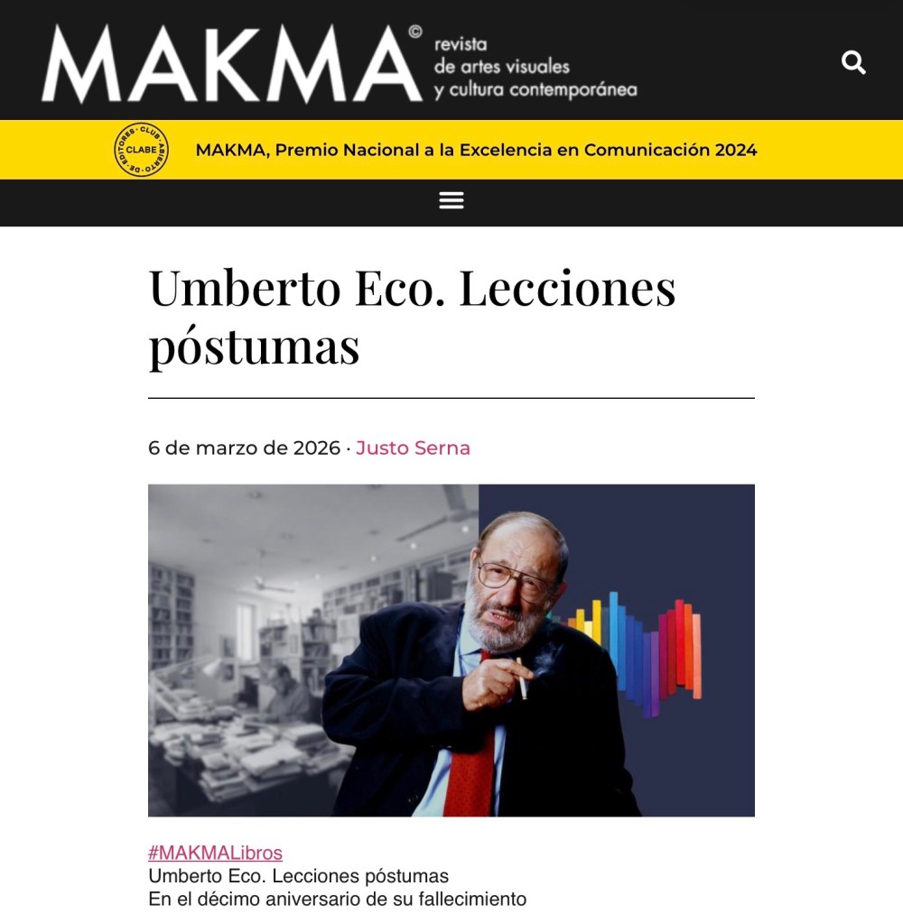 Con motivo de este décimo aniversario he escrito para MAKMA, para los amigos de MAKMA, un artículo. Lo titulo “Umberto Eco. Lecciones póstumas”.